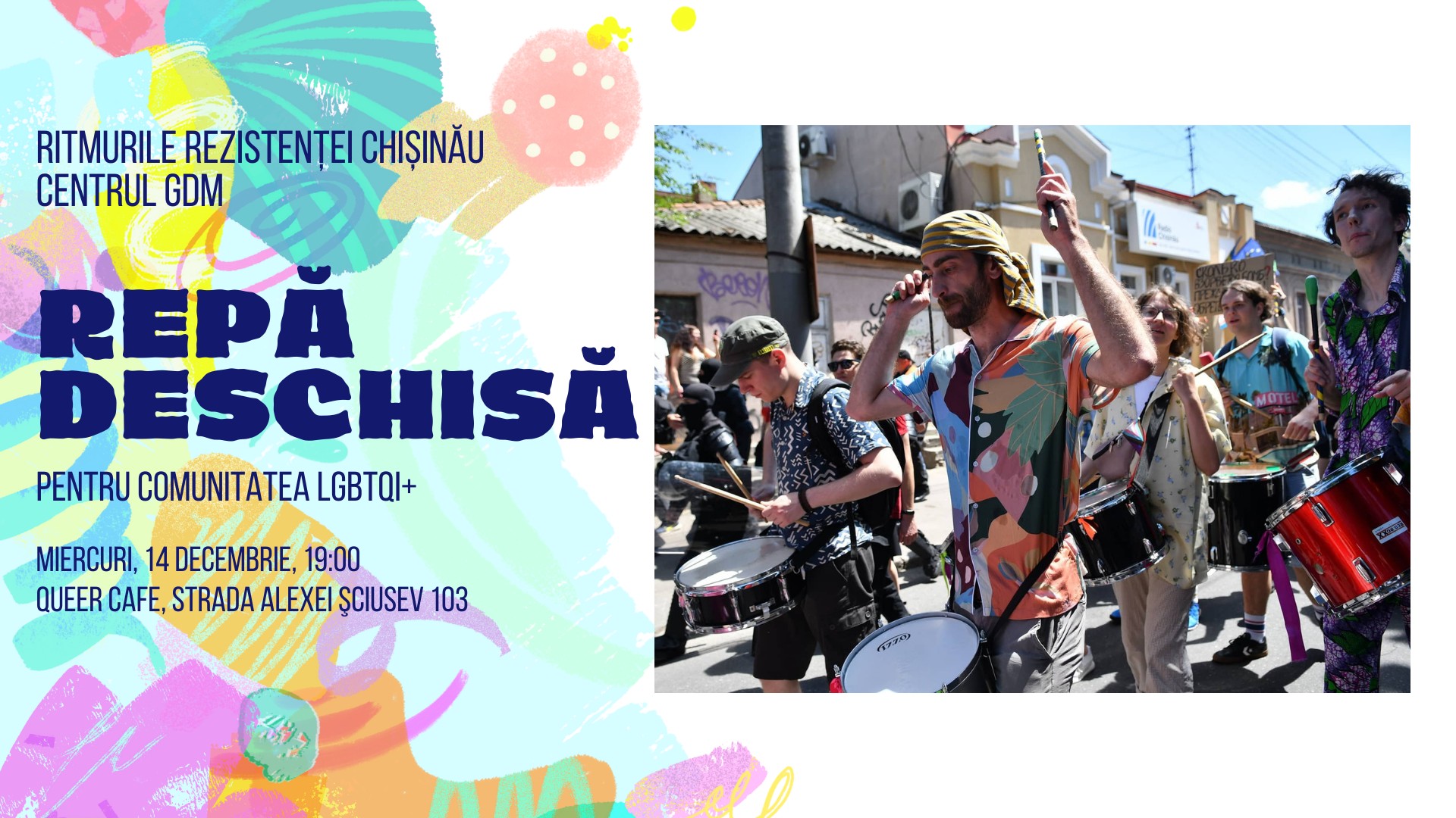 Centrul de Informații GENDERDOC-M împreună cu Ritmurile Rezistenței Chișinău (ROR) invită doritorii la o repetiție deschisă pentru comunitatea LGBTQI+ miercuri, 14 decembrie, începând cu ora 19:00, la Queer Café.