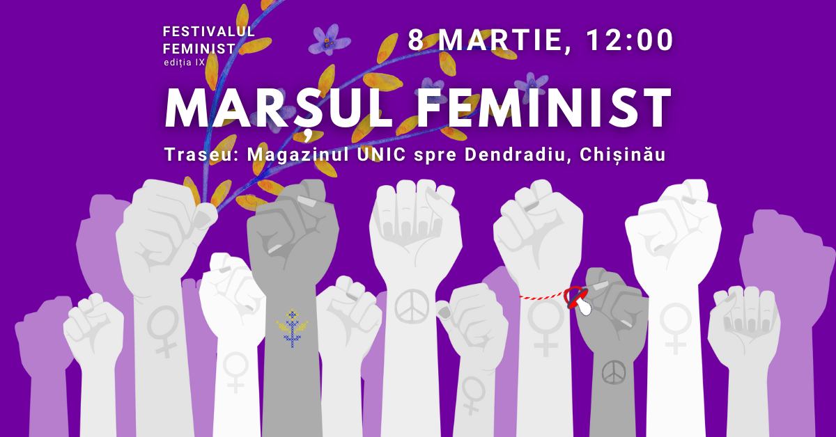 Marșul Feminist va avea loc pe 8 martie la Chișinău, în cadrul celei de-a IX-a ediții a Festivalului Feminist „Femeile între pace și război”, unde cei prezenți vor urma un traseu, militând pentru respectarea drepturilor femeilor.