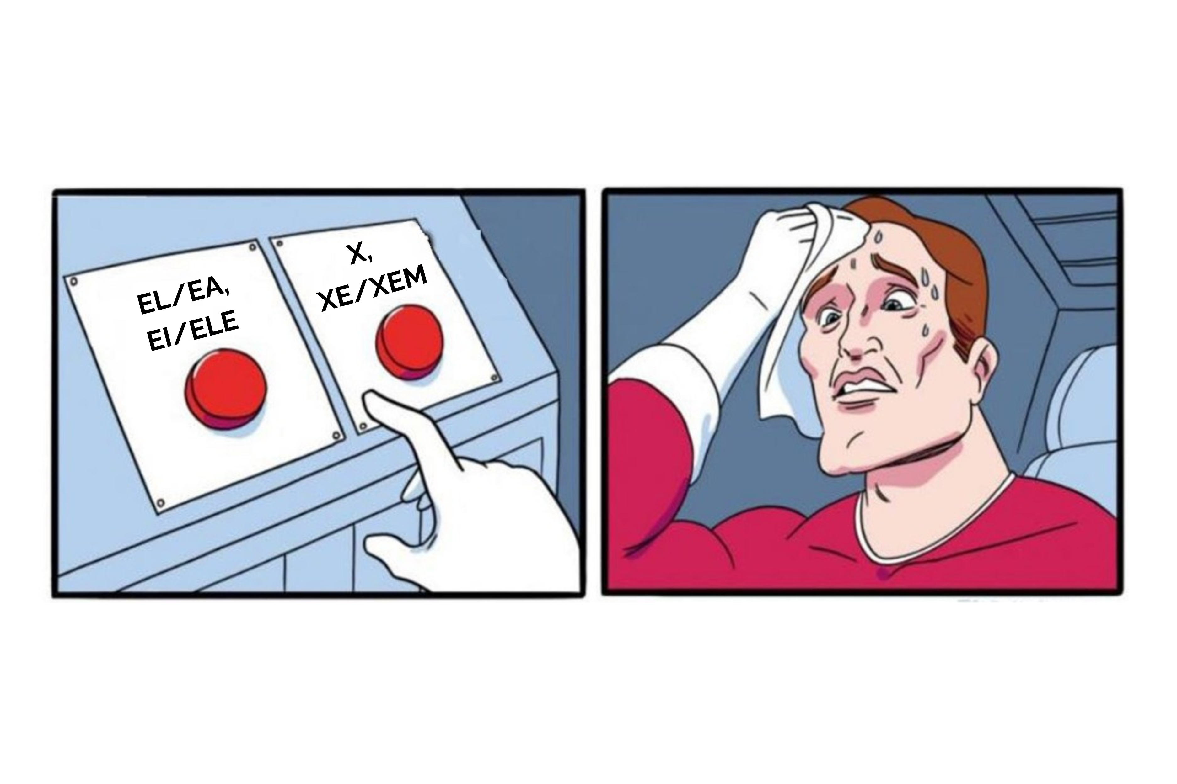- Suntem atenți la limbajul vorbit. Limba română nu este atât de flexibilă cu pronumele neutre, iar multe cuvinte sunt exprimate la masculin și feminin. O greșeală des întâlnită este utilizarea pronumelor corecte, urmată de un adjectiv sau verb utilizat greșit. De exemplu: „Astăzi el a purtat o cămașă albastră. Era foarte frumoasă.!”. Când nu cunoaștem pronumele unei persoane, putem utiliza pronumele „ei”. „Astăzi ei au purtat o cămașă albastră. Ei sunt foarte frumoși!”.
